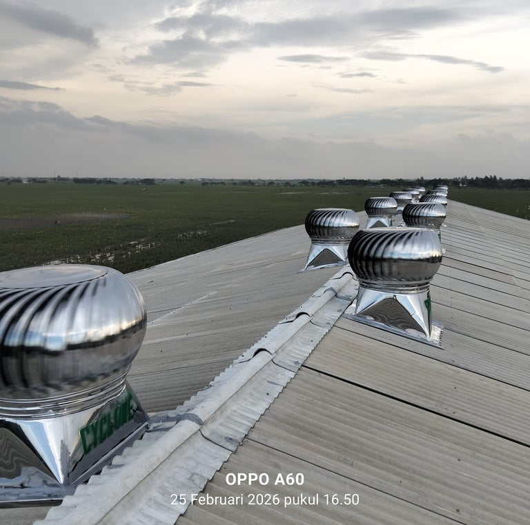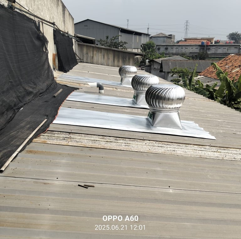 Hasil Foto pemasangan turbin ventilator di berbagai proyek kami.